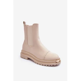 Damskie Skórzane Botki Sztyblety Beżowe Nialee