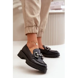 Damskie Skórzane Mokasyny Z Ozdobą CheBello 4369 Czarne