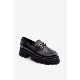 Damskie Skórzane Półbuty Loafersy Z Ozdobą Laura Messi 2699 Czarne