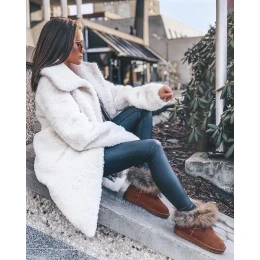 Damskie Skórzane Śniegowce Z Futerkiem Camel Alexa