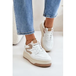 Damskie Sneakersy Z Eko Skóry Na Platformie Biało-Beżowe Henizore