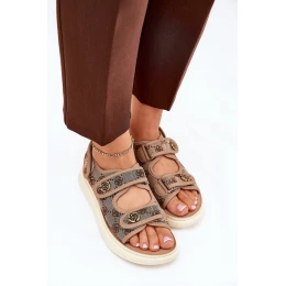 Damskie Wzorzyste Materiałowe Sandały Ze Złotymi Detalami Khaki Pefese
