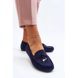 Damskie Zamszowe Klasyczne Mokasyny Granatowe Ontala
