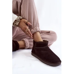 Damskie Zamszowe Niskie Śniegowce Brązowe Shelie
