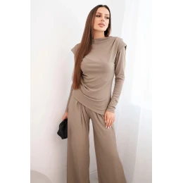 Dámsky bavlnený komplet s blúzkou a širokými nohavicami fango