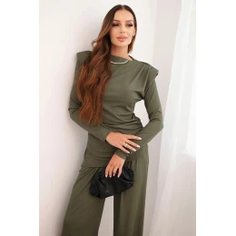 Dámsky bavlnený set s blúzkou a širokými nohavicami Khaki