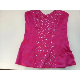 Dámsky saténový korzet bez rukávov, podšitý. Predný diel pošitý kamienkami Swarowski. Zaväzovanie na chrbte. Na boku zapínanie na zips. Všité bočné kostice.