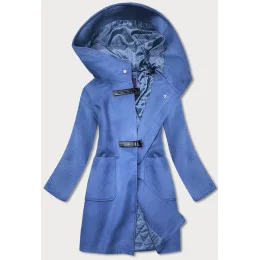 Dámsky krátky kabát s kapucňou modrý (gsq2311)