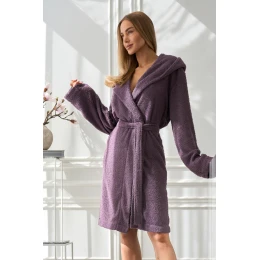Dámsky krátky župan L&L 2557 je ideálnou voľbou pre ženy, ktoré si cenia pohodlie a praktickosť. Je vyrobený zo 100 % mäkkého, výrazného úpletu s nadýchanou štruktúrou, ktorý poskytuje príjemný záves a tepelný komfort. Model je vybavený praktickou kapucňou, ktorá chráni pred chladom, a viazaním v páse, ktoré umožňuje prispôsobiť ho siluete. Dlhé rukávy zaručujú teplo a vrecká na bokoch zvyšujú funkčnosť. Vďaka krátkej dĺžke je župan ľahký, pohodlný a ideálny na pobyt po kúpeli alebo na ranný či večerný relax doma.