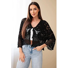 Dámsky letný čipkovaný sveter s gombíkmi a dlhými rukávmi čierny