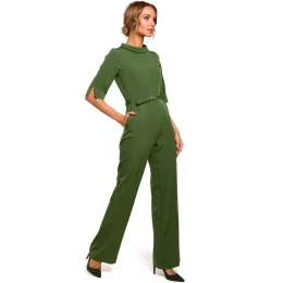 Elegantný a minimalistický overal s rovnými nohavicami a priliehavým vrchným dielom zakončeným golierom. Oblek má krytý zips a vrecká na bokoch. Vďaka svojej jednoduchosti sa dá kombinovať s rôznymi doplnkami a je vhodný na všetky príležitosti a každodenné nosenie do práce.