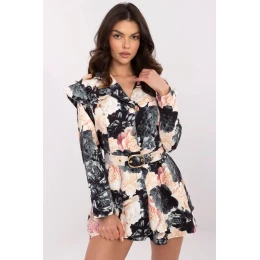 Tento elegantný dámsky overal je štýlovým návrhom na mnohé príležitosti, ideálny do práce, na návštevy alebo na večierky. Je vyrobený z ľahkej a príjemnej zmesi polyesteru a viskózy, čo zaručuje pohodlie a skvelé prispôsobenie sa postave. Moderná kvetinová potlač mu dodáva ženský šarm a volániky na ramenách jemne zvýrazňujú štýlový charakter. Overal má mini dĺžku, ktorá mu dodáva ľahkosť a eleganciu, a dlhé rukávy a klasický golier mu dodávajú elegantný akcent. Zapínanie na gombíky a opasok zvýrazňujúci pás robia celkový dojem mimoriadne elegantným a ženským. Je to ideálna ponuka pre ženy, ktoré ocenia kombináciu klasického a moderného dizajnu.