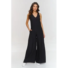 Elegantní overal je skvělým návrhem pro ženy hledající módní outfit. Model má jemný výstřih ve tvaru písmene V, který mu dodává elegantní a ženský vzhled a navíc opticky prodlužuje krk, přidává třídu a lehkost. Široké nohavice a volný střih dělají z overalu velmi pohodlný a zároveň originální kousek. Model se zapíná na zip, co usnadňuje jeho oblékání, zatímco boční kapsy jsou praktickým doplňkem. Další jeho výhodou je příjemný na dotek a prodyšný materiál, což z něj činí skvělou volbu na teplé dny. Díky jednoduchému, ale efektnímu střihu se overal hodí jak na každodenní nošení, tak na formální příležitosti, jako jsou schůzky nebo večerní akce. Můžete ho kombinovat s bílými teniskami na každý den nebo s podpatky na elegantnější události.
