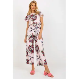 Tento kvetinový overal je ideálnou voľbou na každodennú letnú štylizáciu. Je vyrobený z mäkkého, priedušného bavlneného materiálu s prídavkom elastanu, ktorý poskytuje pohodlie a voľnosť pohybu počas celého dňa. Model má krátke rukávy v podobe roztomilých volánikov a klasický okrúhly výstrih, ktorý zdôrazňuje jemný charakter štylizácie. Dlhé nohavice dodávajú siluete ľahkosť a šnurovací pás umožňuje prispôsobiť overal postave a zvýrazniť pás. Kvetinový vzor dodáva celému kúsku ženský, romantický šarm. Je skvelou voľbou na prechádzku, stretnutie s priateľmi alebo letný deň v meste.