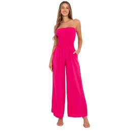 Elegantný a pohodlný overal ideálny na každodenné vychádzky. Je vyrobený z priedušnej a mäkkej viskózy a zaručuje pohodlie počas celého dňa. Dlhý, voľný strih so širokými nohavicami a španielskym výstrihom vytvára moderný, uvoľnený vzhľad. Hladký materiál zdôrazňuje minimalistický charakter modelu a záhyby v hornej časti mu dodávajú jemnú ľahkosť. Zapínanie bez gombíkov uľahčuje rýchle obliekanie a bočné, vsadené vrecká zvyšujú funkčnosť. Ideálna voľba pre ženy, ktoré ocenia štýl a pohodlie v jednom.