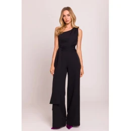 Informácie o výrobku: tkaná textília asymetrický jednodielny overal dizajn na jedno rameno so šerpou široké nohy skrytý bočný zips Náš model je vysoký 171 cm a nosí veľkosť S navrhnutý a vyrobený v Poľsku