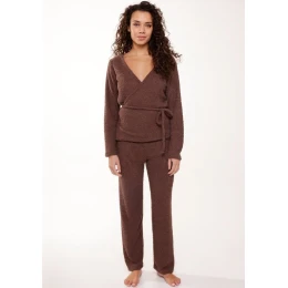 Súprava obsahuje sako, ktoré obopína telo. Výstrih saka je do V, rukávy sú voľné. Nohavice sú voľného, rovného strihu. Nohavice majú širší elastický pás. Celá súprava je príjemne teplá a ideálna na chladné dni.