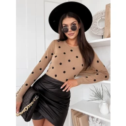 ATHENA - je nielen pôvabným, ale aj romantickým doplnkom vášho šatníka, ktorý okamžite upúta pozornosť svojím jedinečným bodkovaným vzorom. Sveter je vyrobený z mäkkého a na dotyk príjemného materiálu a zaručuje pohodlie a teplo, najmä počas chladnejších dní. Jemné bodky mu dodávajú jemný pôvab a dievčenský šarm, vďaka čomu je ideálnou voľbou na mnohé príležitosti, či už na každodenné nosenie alebo výnimočné udalosti.