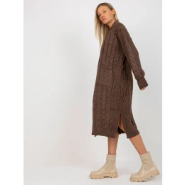 Hnedý maxi sveter s vreckami od značky RUE PARIS .