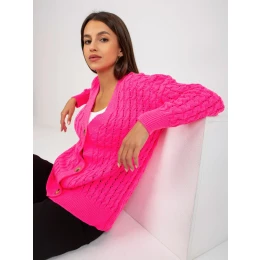 Fluo ružový ažurový sveter na gombíky od značky RUE PARIS .