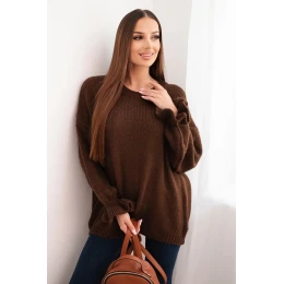 Dámsky sveter z mohéru a vlny voľného strihu hnedej farby