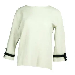 Dámsky sveter na rukávoch zdobený bielym plisovaným volánikom a čiernou stužkou SW 0202 - Gemini
