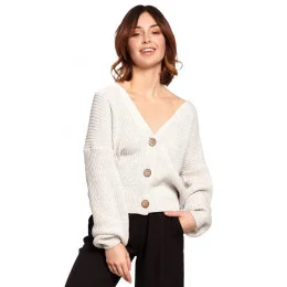 Dámsky sveter s gombíkmi svetlo šedý BK067 - BEwear