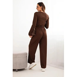 Dámsky viskózový komplet s blúzkou a širokými nohavicami hnedej farby