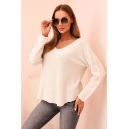 Dámsky viskózový sveter s výstrihom do V, svetlo béžový