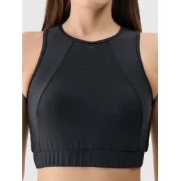 Top má športový strih s vysokým okrúhlym výstrihom a širokou gumou pod prsiami pre maximálne pohodlie a podporu.