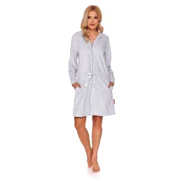 Dámsky župan 1008 sivý Doctornap - sivá farba - vyrobený z kvalitnej bavlny - s vreckami - zapínanie na zips - praktické sťahovanie v páse - s kapucňou - dĺžka nad kolená - certifikát OEKO-TEX Standard 100 Zloženie materiálu: 80% bavlna + 20% polyester