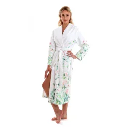 Dámsky župan s golierom JULIA 2151 0001 Biela s kvetmi - Vestis