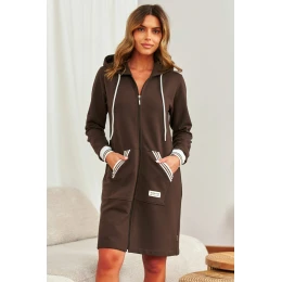 Dámsky župan SMZ.4508 J/25 značky Dr. Nap je moderný, športový štýl, ktorý ľahko nahradí klasickú mikinu. Je vyrobený z mäkkého a na dotyk príjemného úpletu a poskytuje pohodlie počas celého dňa - nielen ráno alebo večer. Model na zips nielenže vyzerá štýlovo, ale je aj veľmi praktický na každodenné použitie. Ozdobné rebrovanie na rukávoch a vreckách dodáva športový nádych, zatiaľ čo pohodlný strih zaručuje, že sa budete cítiť pohodlne - aj v spoločnosti.