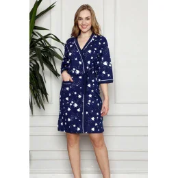 Dámsky župan Y19252 tm. modrý s rybičkami - La Penna