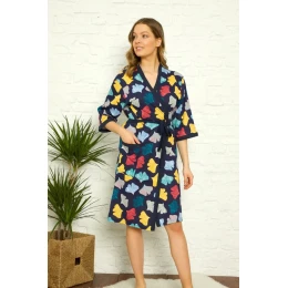 Dámsky župan Y19260 tm. modrý s lístkami - La Penna