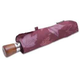 Dámsky skladací dáždnik s drevenou rukoväťou, automatické otváranie.