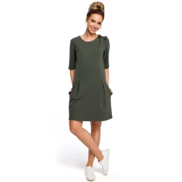 Jednoduchý strih a originálne detaily dodávajú týmto pleteným mini šatám s mierne zníženým pásom, bočnými záhybmi a mašľou na ramene zvláštny šarm.