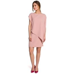 Tieto šaty majú nekonečný zoznam výhod. Pohodlný rovný strih a dĺžka mierne nad kolená. Okrem toho boli navrhnuté vo vrstvách: vrchná, asymetrická vrstva siaha až po líniu bokov, takže šaty sa prispôsobia každej postave. Šaty sa zapínajú na krytý zips.