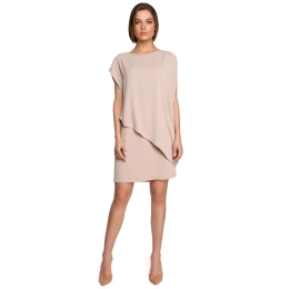 Tieto šaty majú nekonečný zoznam výhod. Pohodlný rovný strih a dĺžka mierne nad kolená. Okrem toho boli navrhnuté vo vrstvách: vrchná, asymetrická vrstva siaha až po líniu bokov, takže šaty sa prispôsobia každej postave. Šaty sa zapínajú na krytý zips.