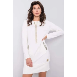 Bavlnené šaty s dlhými rukávmi vo farbe ecru. Posuvné vrecká na bokoch. Ideálne pre každodenné nosenie.