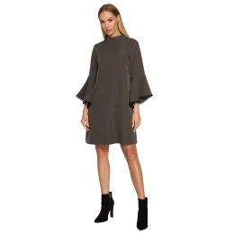 Šaty s lichobežníkovým alebo áčkovým tvarom nielenže dodávajú dievčenský šarm, ale zároveň pomáhajú zakryť nedostatky postavy. Dbali sme na detaily, ktoré ich robia výnimočnými: široké nariasené rukávy zdobí jemná stuha s guľatým lemom. Šaty sú bez podšívky.
