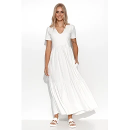 Šaty jsou bezpochyby jedním z nejženštějších kousků ženského šatníku. Není divu, že právě ony dodávají šatům půvab a dívčí šarm. Pletené maxi šaty byly ušity ve velmi klasickém střihu, který z téměř každé ženy udělá přesýpací hodiny. Pohodlný úplet poskytuje pocit volnosti, krátký rukáv zakrývá ramena v jejich nejširších partiích. Výstřih do V prodlužuje krk, zatímco lem v pase zdůrazňuje nejštíhlejší partie ženské postavy a dodává jí lehkost. Lehké volánky, umístěné na několika místech po celé délce šatů, dodají každému oblečení romantický nádech. Maxi šaty v jednobarevném provedení nepotřebují mnoho doplňků, ačkoli jich také mnoho rády přijmou. Sportovní s oblíbenou ledvinkou a teniskami nebo elegantní s lodičkami na podpatku a kabelkou se spojkou.