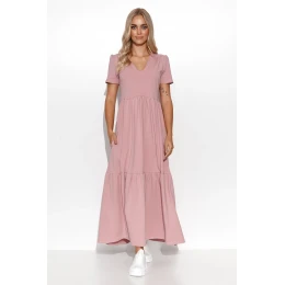 Šaty jsou bezpochyby jedním z nejženštějších kousků ženského šatníku. Není divu, že právě ony dodávají šatům půvab a dívčí šarm. Pletené maxi šaty byly ušity ve velmi klasickém střihu, který z téměř každé ženy udělá přesýpací hodiny. Pohodlný úplet poskytuje pocit volnosti, krátký rukáv zakrývá ramena v jejich nejširších partiích. Výstřih do V prodlužuje krk, zatímco lem v pase zdůrazňuje nejštíhlejší partie ženské postavy a dodává jí lehkost. Lehké volánky, umístěné na několika místech po celé délce šatů, dodají každému oblečení romantický nádech. Maxi šaty v jednobarevném provedení nepotřebují mnoho doplňků, ačkoli jich také mnoho rády přijmou. Sportovní s oblíbenou ledvinkou a teniskami nebo elegantní s lodičkami na podpatku a kabelkou se spojkou.