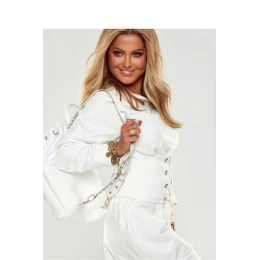 Biele mikinové šaty so širokým opaskom. Šaty sú vyrobené z mäkkej mikinovej tkaniny a majú ležérny strih z kolekcie By o la la. Model má široký lodičkový výstrih a dlhé rukávy s manžetami. Súčasťou šiat je pútavý široký šnurovací opasok so zapínaním na zips a háčik. Opasok dodáva šatám jedinečný charakter.