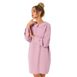 Tunikové šaty s golierom a retiazkovým výstrihom na chrbte. Dlhé rukávy a voľný strih.