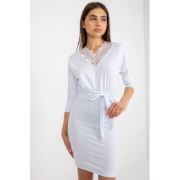 Šaty rovného strihu s 3/4 rukávmi a srdiečkovým výstrihom. Výstrih je zdobený ozdobnou čipkou a v páse je opasok na zaväzovanie. Ideálne na mnohé príležitosti.