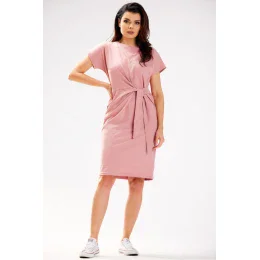 Midi šaty s krátkymi rukávmi. Asymetrické zaväzovanie vpredu. Vyrobené z mäkkej bavlny. Navrhnuté a ušité v Poľsku.