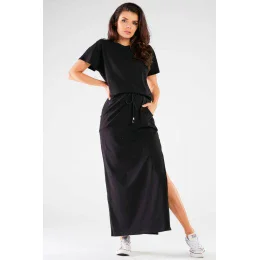 Dlhé letné šaty. Materiál jemný na dotyk umožňuje pokožke voľne dýchať, vďaka čomu sú šaty neuveriteľne pohodlné a ľahko sa nosia. Model s krátkym rukávom je najlepšou voľbou na jarno-letné obdobie. Navrhnuté a ušité v Poľsku.