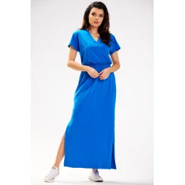 Maxi šaty s krátkymi rukávmi a srdiečkovým výstrihom. Maxi dĺžka umožňuje opticky zoštíhliť siluetu a zvýrazniť prednosti. Navrhnuté a ušité v Poľsku.
