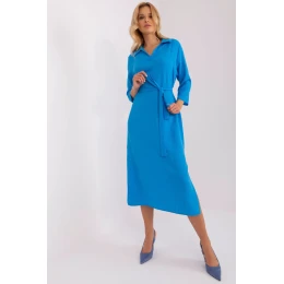 Šaty rovného strihu s 3/4 rukávmi, zaväzovaním v páse a bočnými rázporkami. Návrh na každodenné nosenie aj mimo neho.